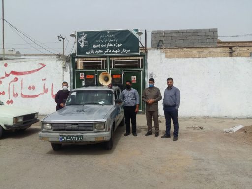 در راستای تحقق طرح شهید سلیمانی و قطع زنجیره ویروس کرونا بسیجیان حوزه سردار شهید دکتر مجید بقایی با استفاده از وسیله نقلیه و سیستم صوتی و حضور در مناطق پرخطر شهرستان تذکرات رعایت نکات بهداشتی را اعلام نمودند.